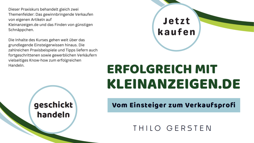 Ich habe meine jahrelangen Erfahrungen mit Kleinanzeigen in diesem Kurs zusammengefasst. Einsteigern wird Schritt-für-Schritt erklärt, wie Sie erfolgreich die ersten Produkte verkaufen. Mit vielen Hinweisen und nützlichen Tipps ist das Handeln ein Kinderspiel!